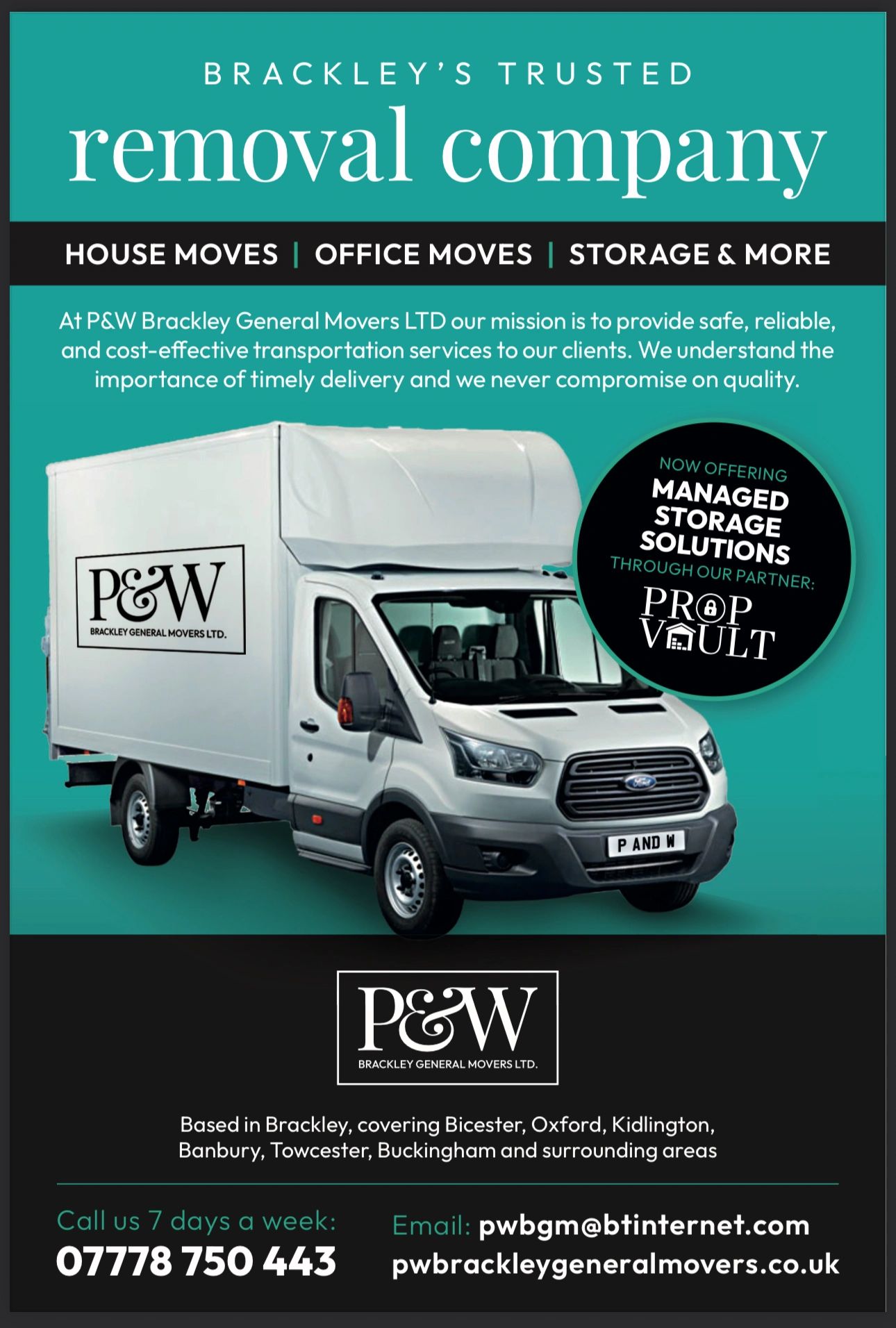 At P&W Brackley General Movers LTD our mission is to provide safe, reliable, and cost-effective removals and transportation services to our clients. We understand the importance of timely delivery and we never compromise on quality.